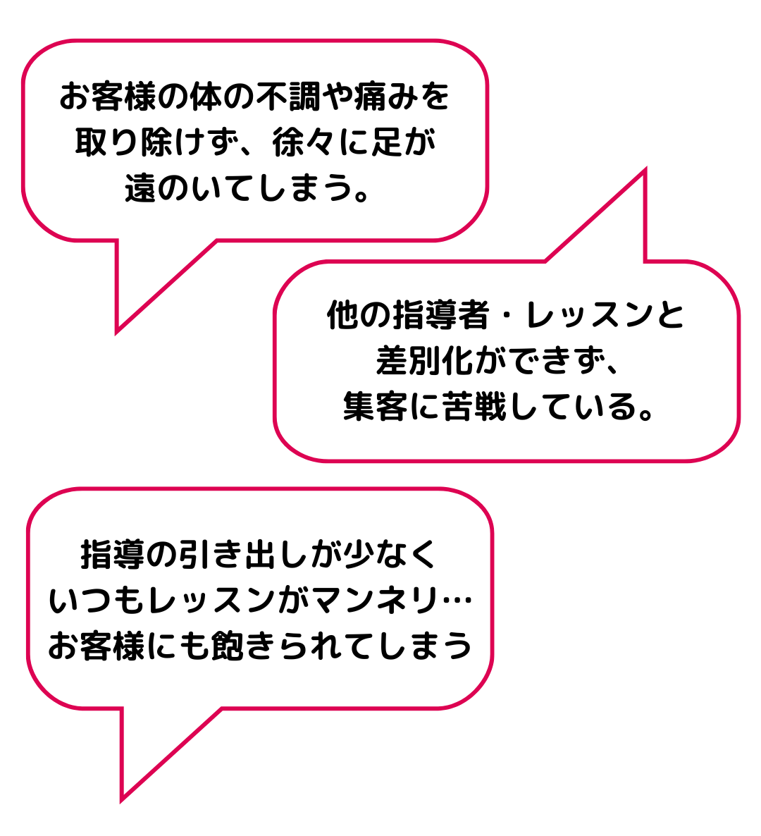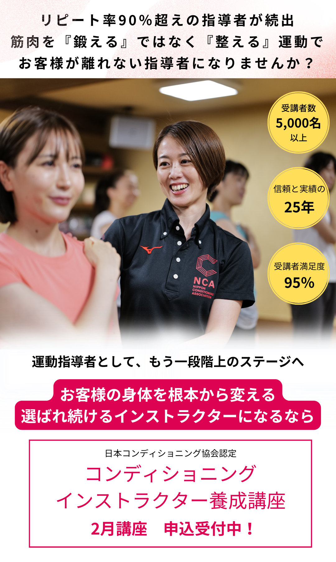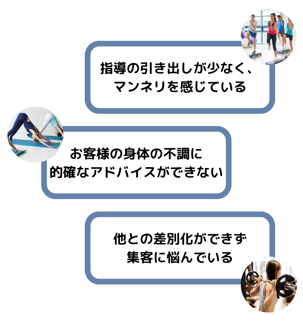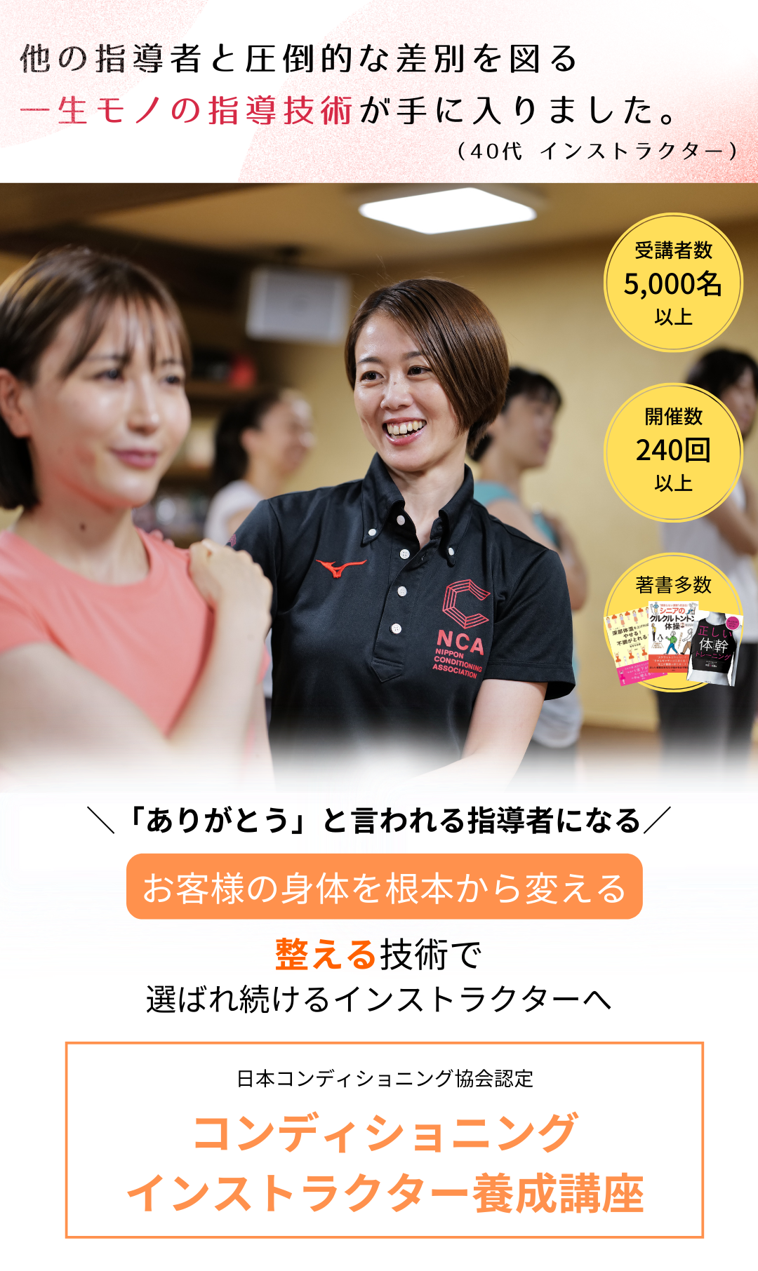 痩せたいという理由でジムに通っているお客様に、コンディショニングで筋肉を整えることを提案。理想の体型を手に入れてもらうだけでなく、肩こりや腰痛などの不調も改善。プラスアルファの価値を提供することで、他のインストラクターとの差別化に成功し、多くのお客様にご指示いただいています。